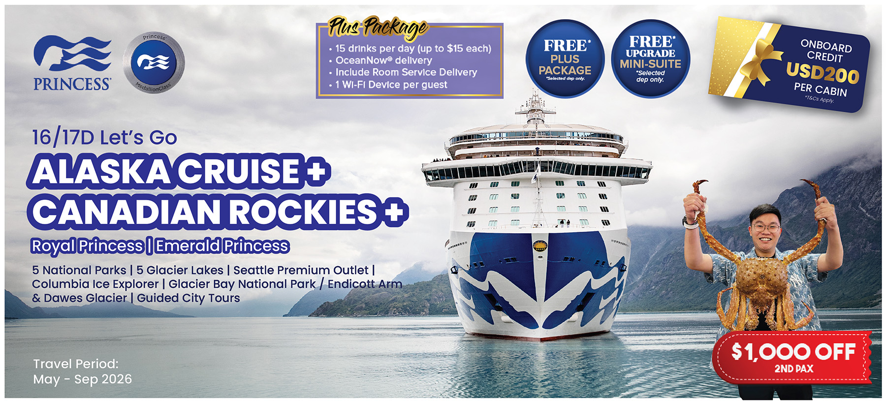 All prices are subject to applicable taxes, fuel surcharges and service fee indicated as per itinerary.