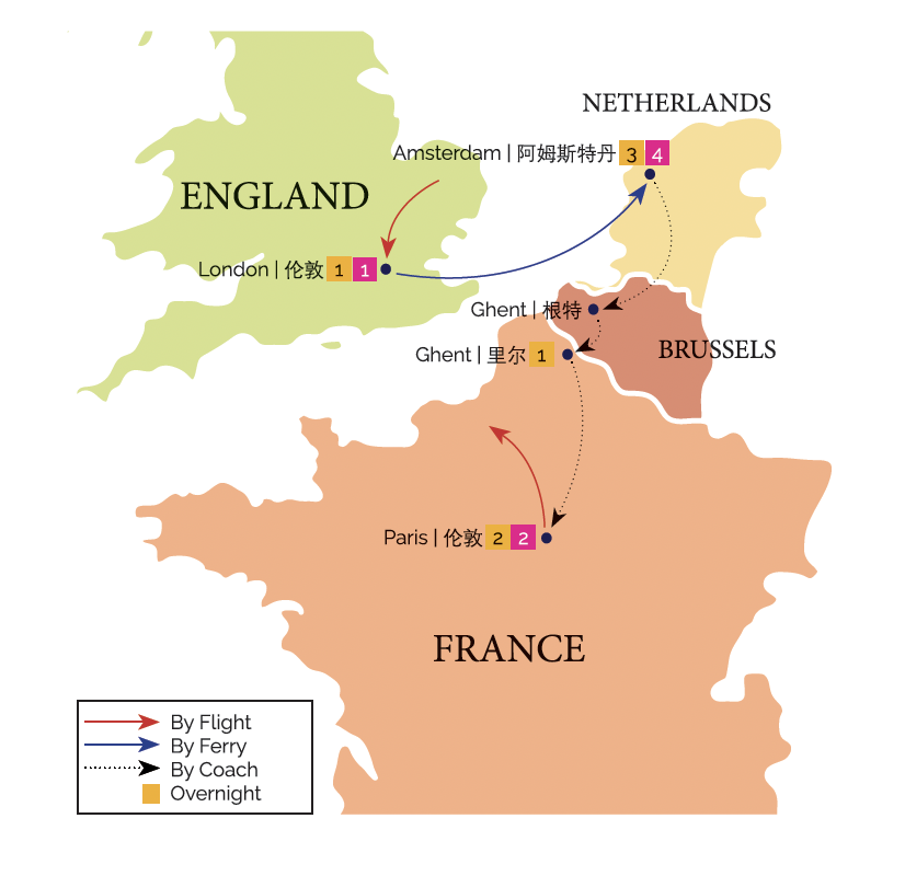 Experience the best of Europe with a ferry ride from London to Amsterdam, a visit to the stunning Keukenhof Gardens, and city tours of Paris, London, and Ghent. Enjoy a special lunch at Le Train Bleu Paris and extra free days in both Paris and London to explore at your own pace — a perfect mix of culture, beauty, and leisure.